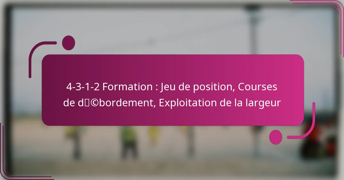 La formation 4-3-1-2 est un dispositif tactique au football qui comprend quatre défenseurs, trois milieux de terrain, un milieu de terrain offensif et deux attaquants. Cette formation met l’accent sur une forte présence au milieu de terrain tout en permettant une flexibilité tant en défense qu’en attaque. En se concentrant sur le jeu de position, les courses de débordement et l’exploitation de la largeur, les équipes peuvent améliorer leurs stratégies offensives et décomposer efficacement les défenses adverses.