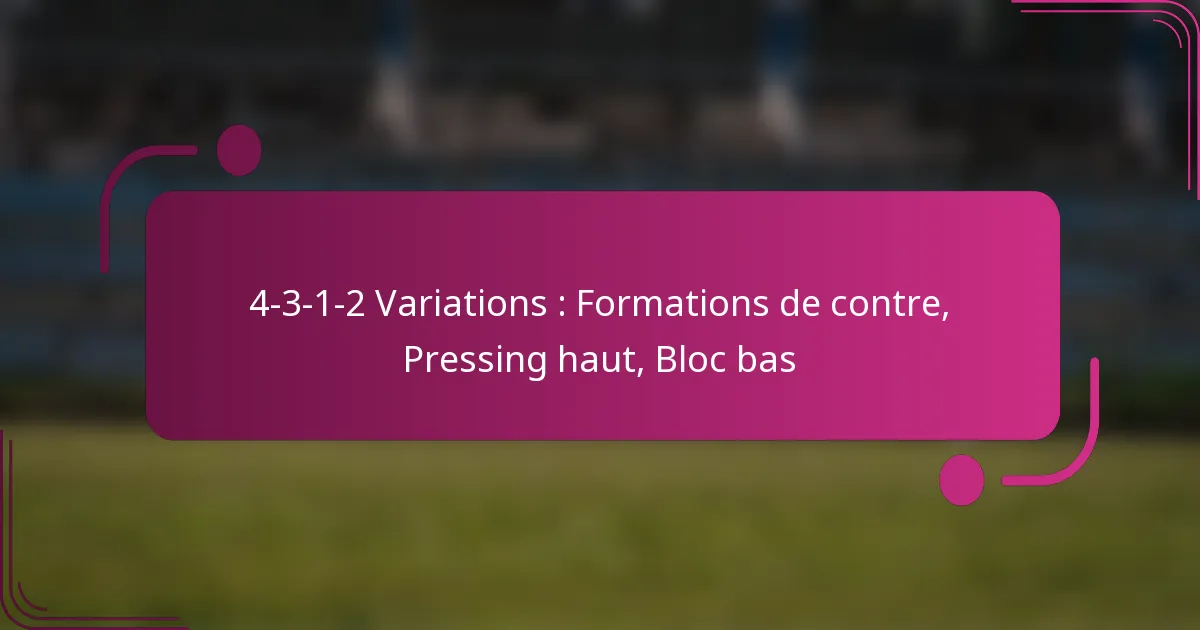 La formation 4-3-1-2 est un dispositif tactique au football qui comprend quatre défenseurs, trois milieux de terrain, un milieu de terrain offensif et deux attaquants. Cette formation met non seulement l’accent sur une forte présence au milieu de terrain, mais permet également une adaptabilité dans diverses stratégies, telles que les formations de contre, le pressing haut et le bloc bas. Chaque variation exploite les forces inhérentes de la formation pour tirer parti des faiblesses des adversaires et améliorer la performance globale de l’équipe.